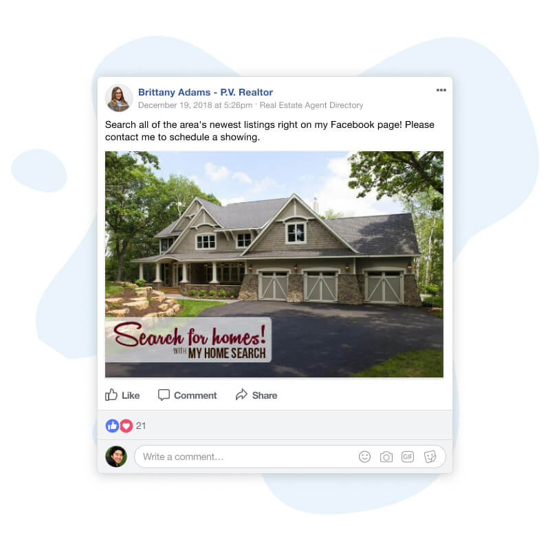 Unlike with a personal page, Facebook business pages allow you to launch inexpensive advertising campaigns that have the potential to reach thousands. Facebook ads are totally customizable and can promote your business page, IDX Home Search, listings, open houses and more! You control where these ads are targeted so they’ll only be shown in the areas you do business.